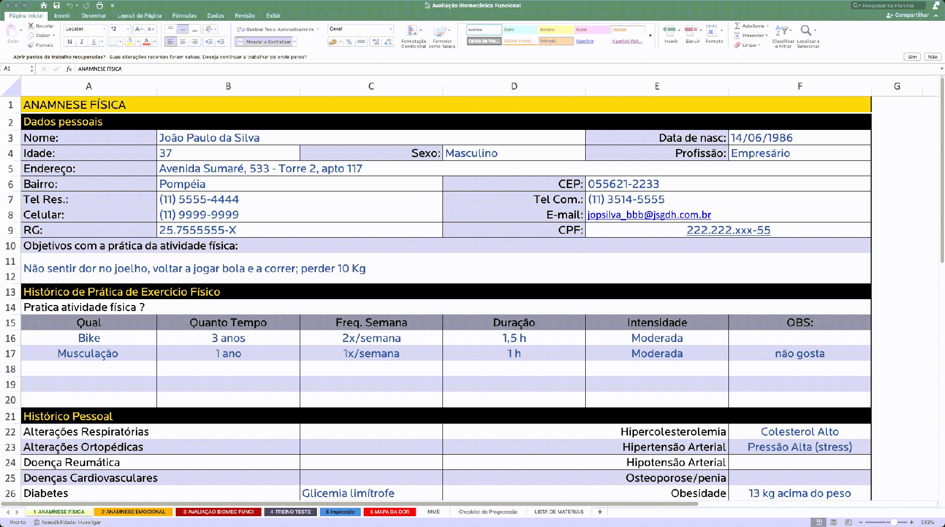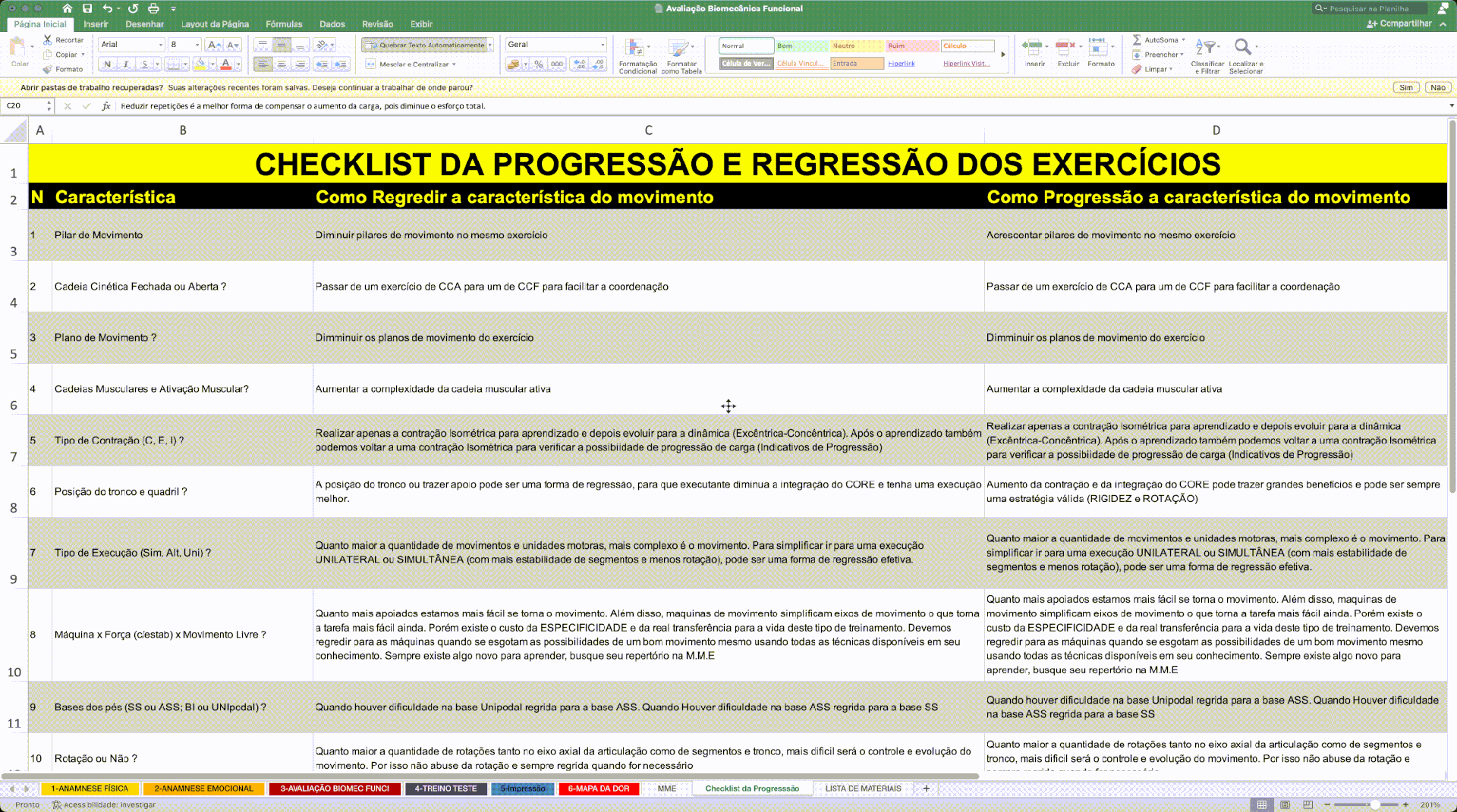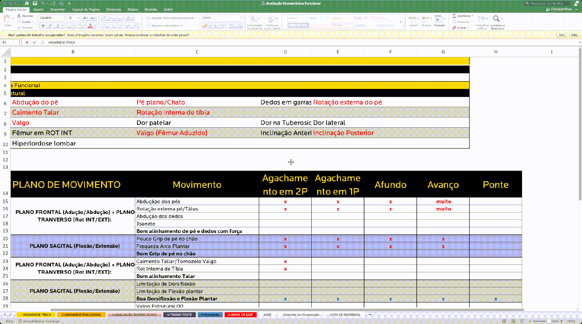 BÔNUS: Planilha da Avaliação Biomecânica Funcional
