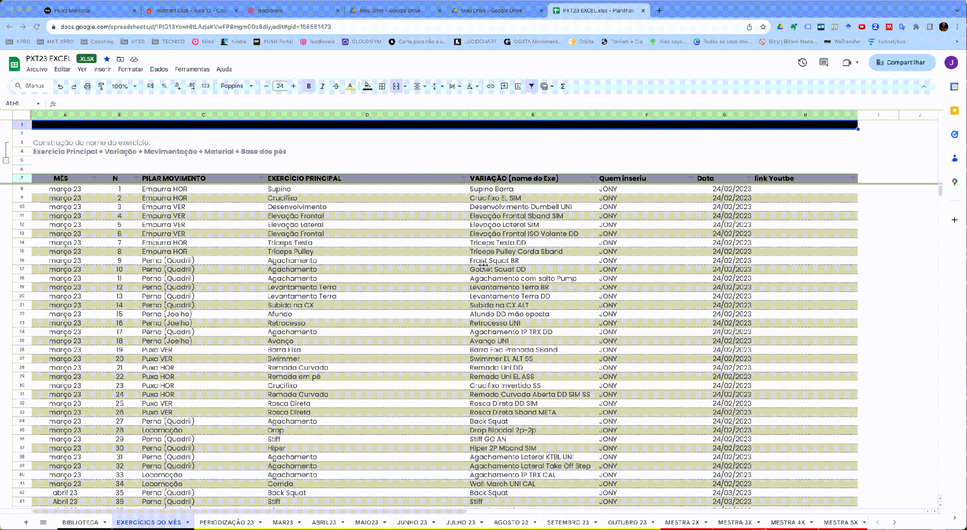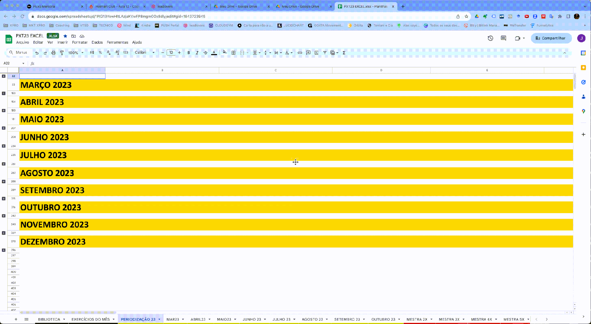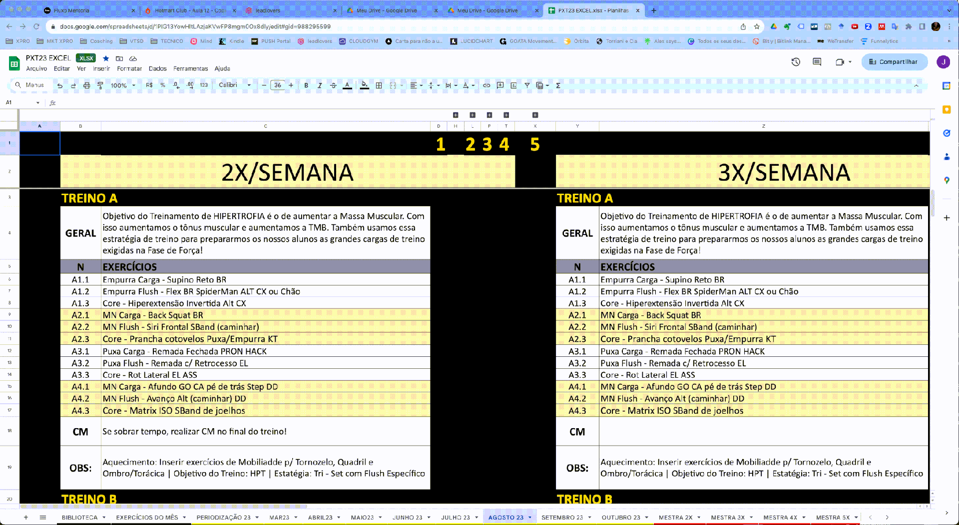 Depois de mais de 20 anos testando planilhas e apps, chegamos a um modelo simples que qualquer treinador consegue usar em seu celular. Você terá acesso a todas as suas idéias, exercícios, anotações e periodizações de seus aluno em uma única planilha anual, mantendo tudo organizado para quando você quiser montar os treinos ou ver a evolução do seu cliente.