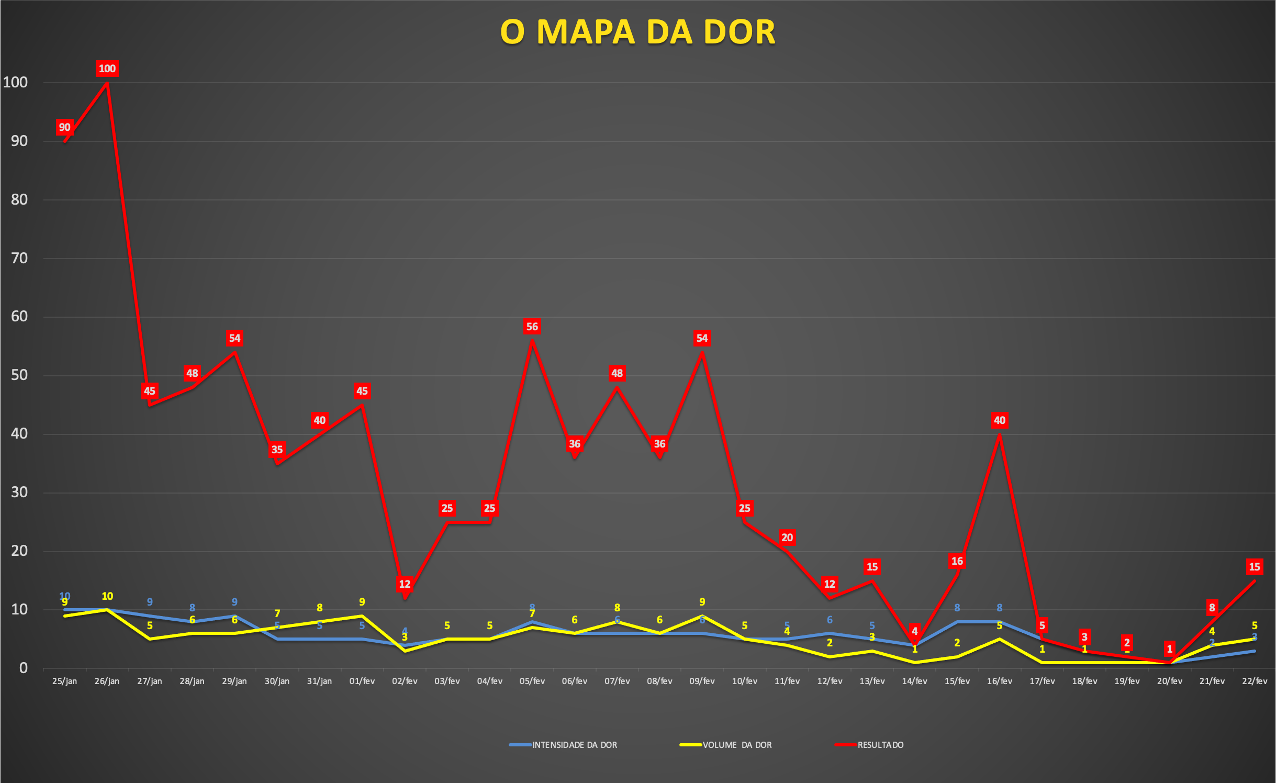 Saiba como avaliar a dor e a sua evolução através de uma ferramenta gráfica incrível, só assim você saberá se está entregando o resultado que realmente interessa para o seu aluno, dia-a-dia, durante todos os meses de treinamento. Se quiser, essa ferramenta inclusive pode virar um "Relatório de Evolução da dor" mensal.